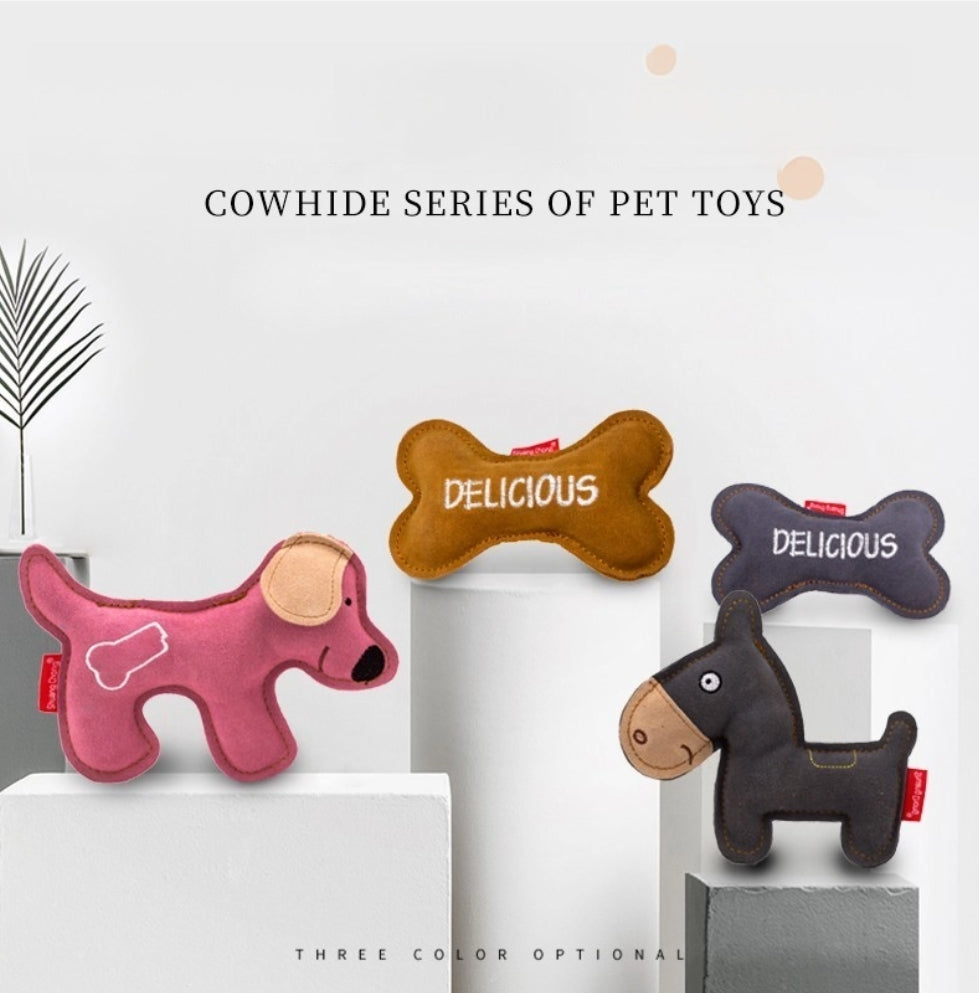 Made from high - quality natural cowhide, these toys are tough, durable, and safe for pets to chew. With various shapes like bones, balls, and ropes, they satisfy pets' natural instincts and keep them entertained. Some toys even feature built - in sounds or textured surfaces for added fun and dental care. Easy to clean, they're a great choice for pet owners