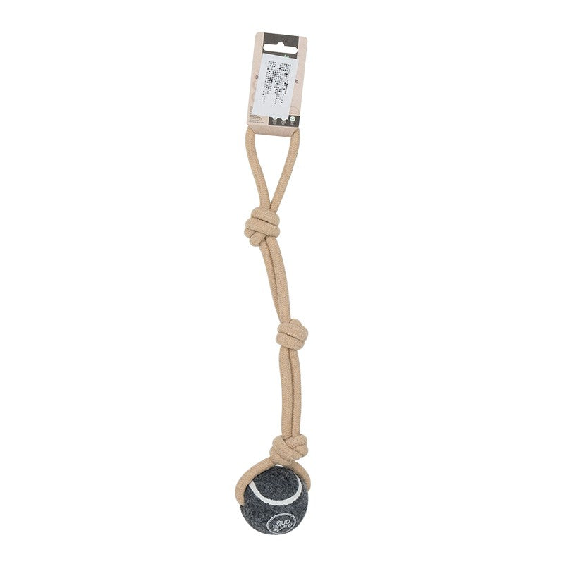 This tennis ball rope toy is a perfect blend of fun and durability. A classic tennis ball is securely attached to sturdy ropes, which are ideal for interactive tug - of - war games and fetch. The textured surface of the ball helps clean your pet’s teeth as they chew, while the ropes are tough enough to withstand vigorous play, ensuring endless entertainment for your furry friend both indoors and outdoors